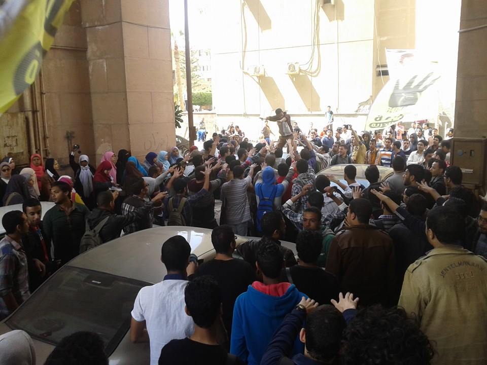 تأتي هذه التظاهرات بعد اعتداء قوات الأمن علي كلية الهندسة أمس بالغاز والخرطوش والذي تصدي له الطلاب بالحجارة والألعاب النارية مما أدي الي إنسحاب قوات الامن من أمام الطلاب .