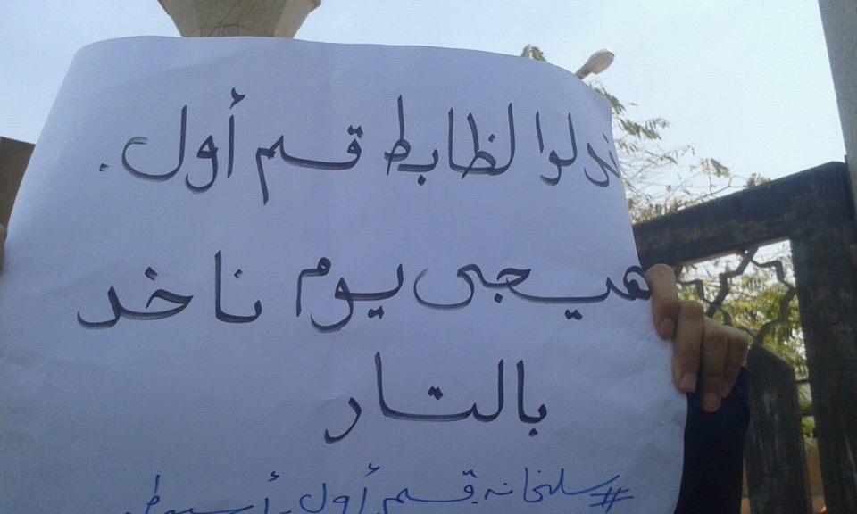 وقالت إحدى الطالبات المشاركات أنهن قررن تنظيم المسيرة بهذا الشعار بعد الأخبار التي وردت من المحامين وأهالي معتقلي قسم شرطة أول أسيوط، والتي تفيد بتعرضهم للصعق بالكهرباء والضرب المبرح و أشكال أخرى من التعذيب .