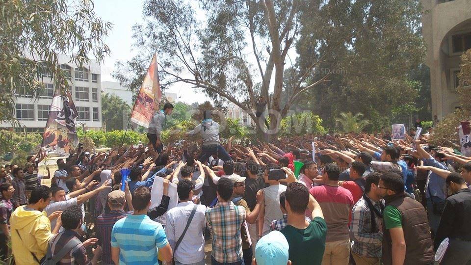 وكان الطلاب قد بدؤوا احتجاجاتهم، صباح اليوم الأربعاء، داخل أسوار الجامعة معلنين عن فعاليات مناهضة للانقلاب اليوم وسط حشد طلابي كبير ، وطالب المشاركون بالحرية لزملائهم المعتقلين.