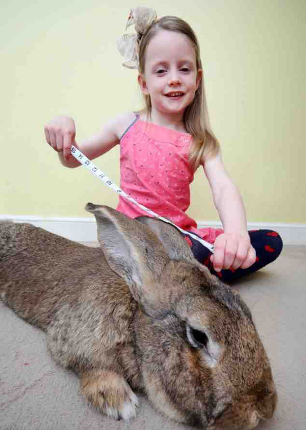 ويماثل حجم هذا الأرنب الذي يعتبر من عائلة الأرانب العملاقة، حجم صديقته الطفلة "ميا" التي تبلغ من العمر 6 سنوات، حسبما ذكرت صحيفة الديلي ميل البريطانية.