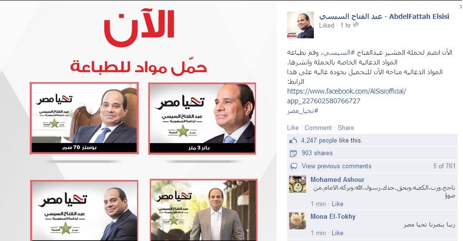 وظهرت النجمة الخضراء التي حلم بها كرمز انتخابي رسميا للسيسي ونشرت على صفحته الرسمية باللون الأخضر وهو الرمز الذي عُلق على كافة الدعاية الانتخابية له بالشوارع.