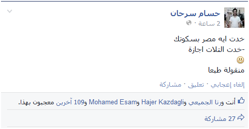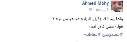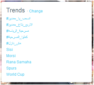 وانعكس الأمر على تويتر بالتالي، فكانت أكثر الهاشتاجات المستخدمة تنحصر في حث المرشح حمدين صباحي على الانسحاب، وبين هاش تاجي “أكملوا المسرحية”، و “مسرحية الرياسة”