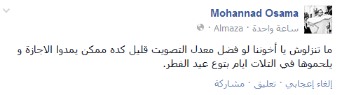 حتى أن الدولة غير إعطائها لذاك اليوم كأجازة رسمية فقد جعلت المواصلات مجانية، بل أن رجال أعمال كمحمد أبو العينين هدد موظفيه وعماله بالنظر في حوافزهم إذا لم يذهبوا للانتخاب.