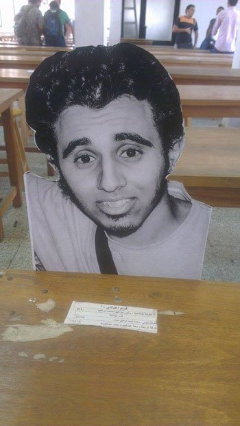 عبر عدد من طلاب كلية الهندسة، بجامعة القاهرة عن تضامنهم مع زملائهم المعتقلين، عبر وضع مجسمات تحمل صورهم في لجان الإمتحان.