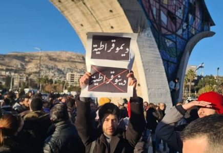 خرج مئات من مجموعة “تجمع الشباب المدني” في وسط العاصمة السورية دمشق عصر الخميس، في تظاهرة في ساحة الأمويين، نادت بـ”حكم مدني وديمقراطي وعلماني” في سوريا. شارك فيها عدد من الأدباء والفنانين والكتّاب وركزت المطالب بشكل رئيسي...