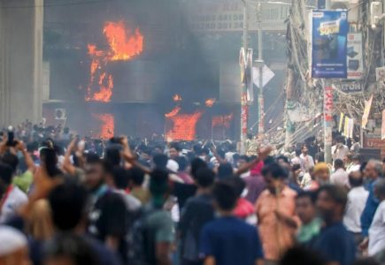 احتجاجات شعبية في بنجلاديش وإشعال النيران في مبنى التلفزيون الرسمي