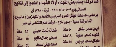 سياسة الجيش المصري الأمن الوطني يطلب من الكنيسة إزالة نصب تذكاري لضحايا «ماسبيرو» الأحد، 6 أكتوبر 2019، 9:38 م