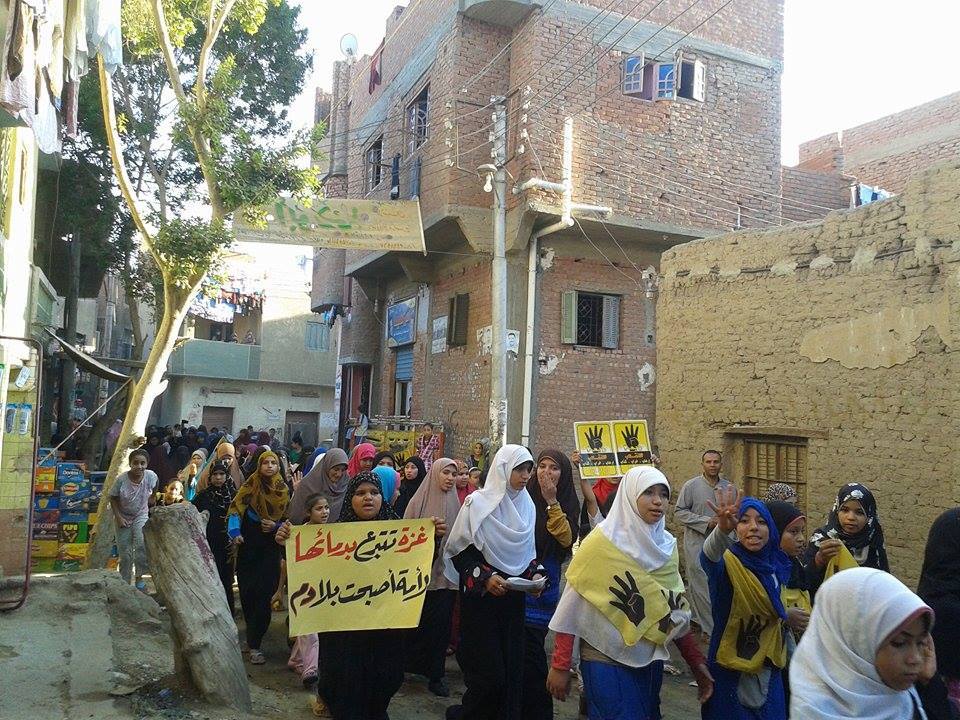 نظمت حركة "نساء ضد الانقلاب" بالتعاون مع "طالبات ضد الانقلاب" في "الفيوم"، مسيرة حاشدة بقرية "الأعلام"، دعماً لـ"غزة"، وتنديداً بالعدوان الصهيوني علي قطاع "غزة" .