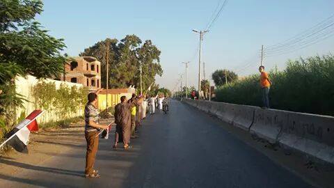 نظم أهالي مدينة "أشمون"، بمحافظة "المنوفية"، سلسلة بشرية أمام الحضانات على طريق "سنتريس – الباجور"، حيث حمل المشاركون لافتات منددة بتردي الأوضاع الاقتصادية، وغلاء الأسعار، رافعين شارات "رابعة".