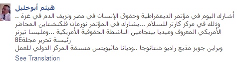 ينظم مركز كارتر للسلام -اليوم السبت- مؤتمرا حول الديمقراطية وحقوق الإنسان في مصر، ونزيف الدم في غزة.