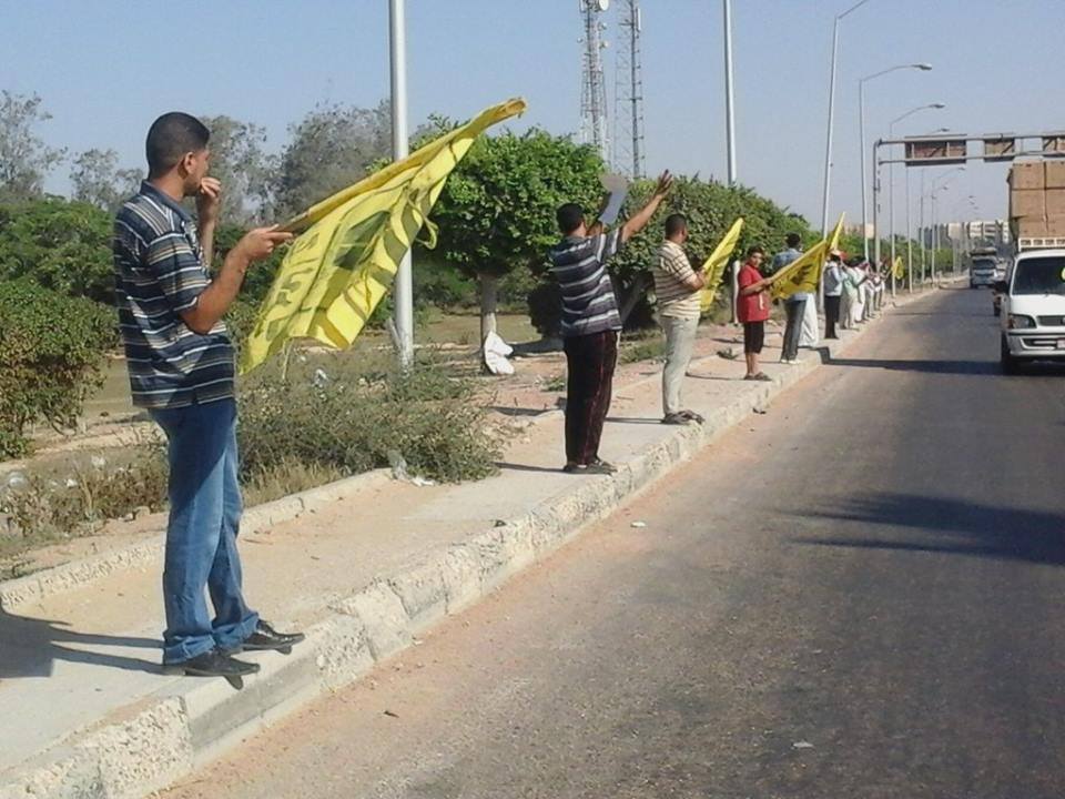نظم رافضو الانقلاب بمحافظة "الأسكندرية"، سلسلة بشرية في مدخل مدينة "برج العرب"، حمل المشاركون لافتات تندد بالانتهاكات بحق رافضي الانقلاب في سجون العسكر، كما حملوا شارات "رابعة" .