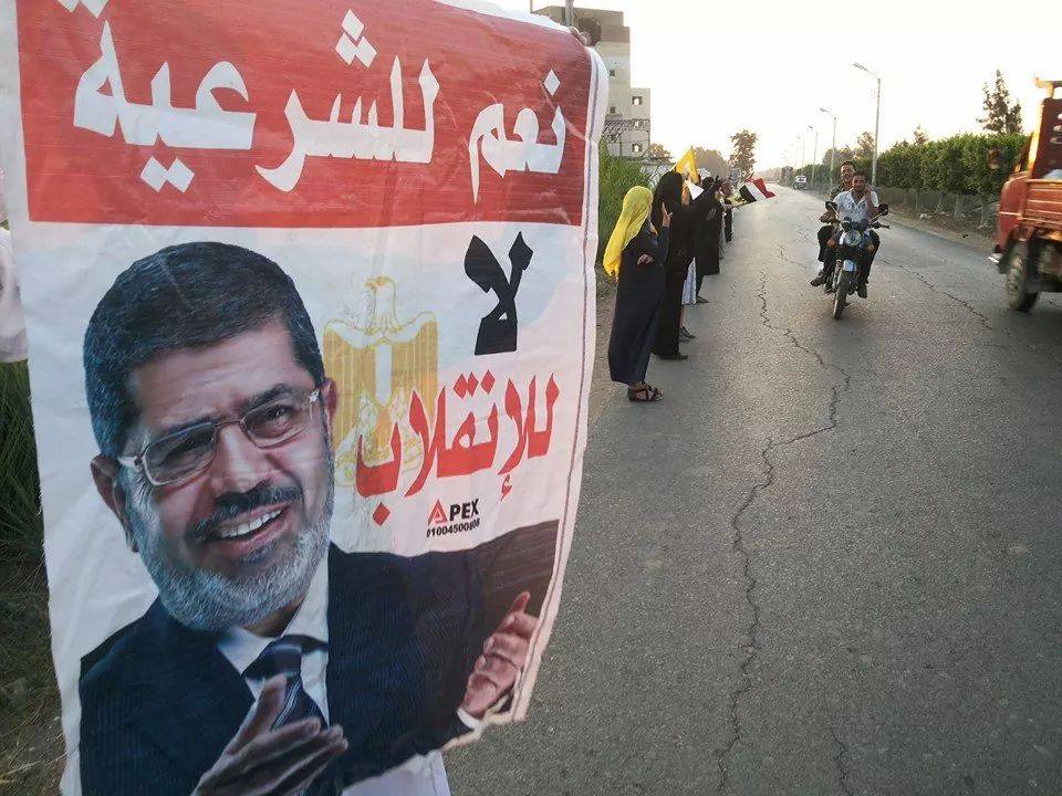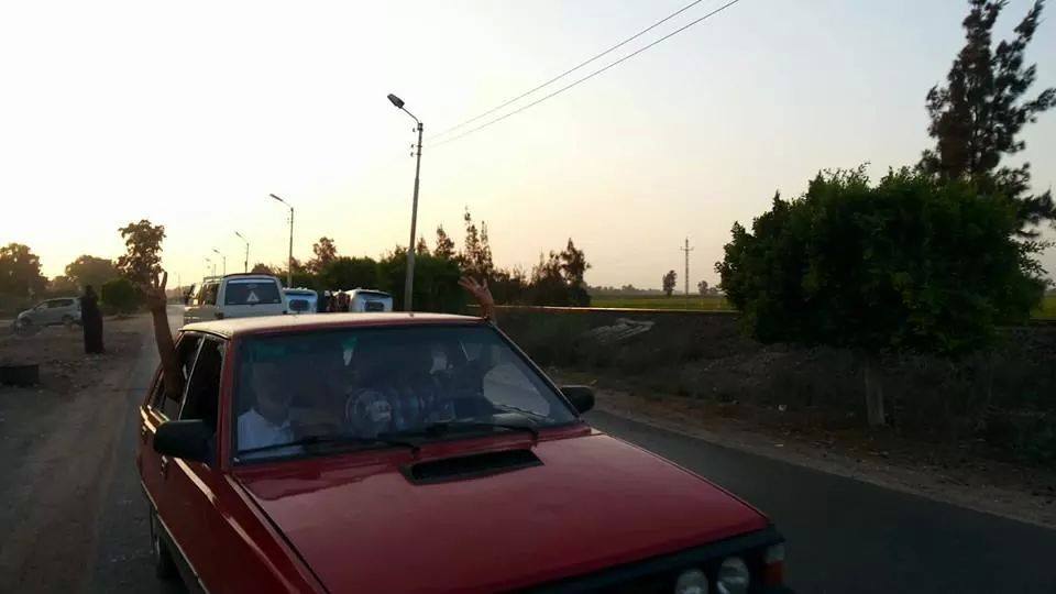 نظم رافضو الانقلاب بمركز "قلين"، في "كفر الشيخ"، سلسلة بشرية على طريق "كفرالشيخ – قلين"، حملوا خلالها شارات "رابعة"، وصورًا للمعتقليين مطالبين بالإفراج الفوري عنهم.