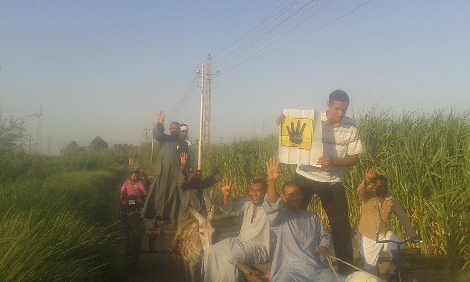قام عدد من المزارعين بـ"الأقصر" بتنظيم مسيرة مناهضة للانقلاب العسكري، بـ"عربات الكارو"، في منطقة "القرنة"غرب الأقصر، رفع المشاركون شارات "رابعة"، كما هتفوا ضد حكم العسكر.