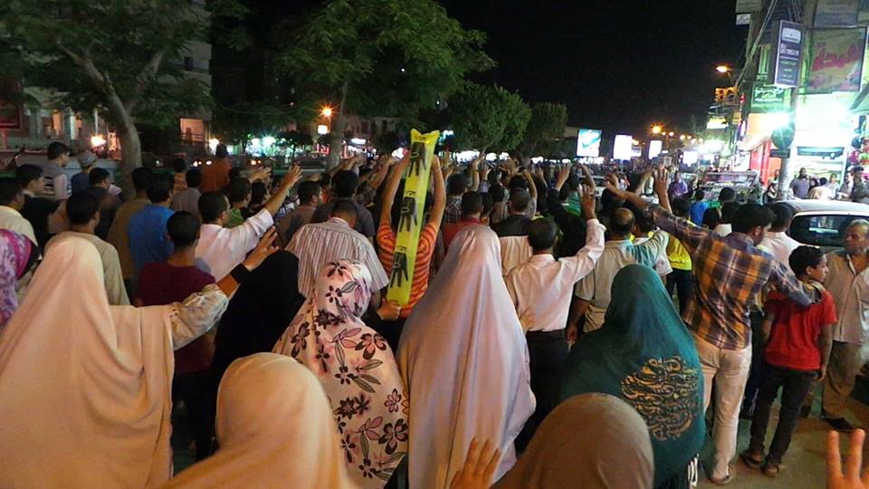 كما نظم رافضو حكم العسكر بمركز "سنورس"، مسيرة حاشدة، نددوا خلالها بالأحوال المعيشية السيئة، منددين بغلاء الأسعار، مطالبين بالمسؤولين عن الأزمات الاقتصادية، التي تشهدها مصر، مؤكدين على استمرار حراكهم حتى إسقاط الانقلاب.
