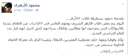 وأكد الأزهري فى تدوينة عبر صفحته على موقع التواصل الاجتماعي "فيس بوك" ، "وقوف الحركة وبقوة خلف معتقلينا المضربين الأبطال ويقيننا التام بان معركة الأمعاء الخاوية ستنتصر من جديد".