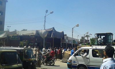 وتظهر الصور قيام لودرات ضخمة بتحطيم الأكشاك والتعدي عليهم، والتحفظ على السلع والبضائع، وسط مشادات كلامية من جانب الباعة.