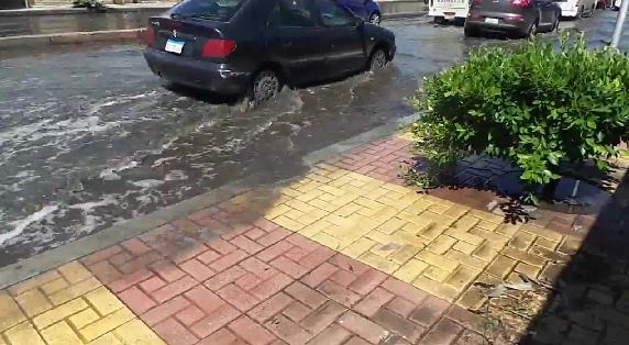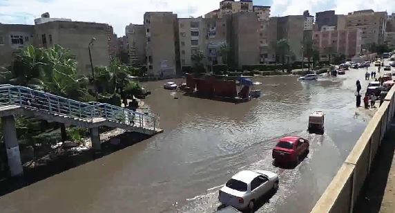 حيث ارتفع منسوب المياه بالشوارع بعد سقوط الأمطار، ليتجاوز ارتفاعه في كثير من الأماكن الـ 25 سم.