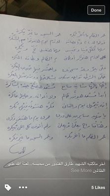 وبحسب ابنه زياد، وعن آخر محادثة دارت بينهما، كتب عبر صفحته على موقع"فيس بوك: قائلاً: "آخر محادثة وهو واعي فيها، كانت وهو داخل عربية الترحيلات:
