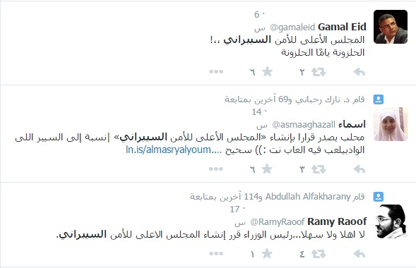فيما سخر نشطاء على موقع التواصل الاجتماعي "توتير "من القرار من القرار على هاشتاج #السيبراني.. وقال الناشط الحقوقي جمال عيد " المجلس الأعلى للأمن السيبراني،،! الحلزونة يامٌا الحلزونة".