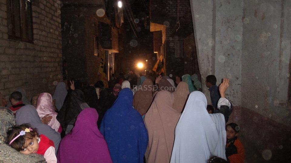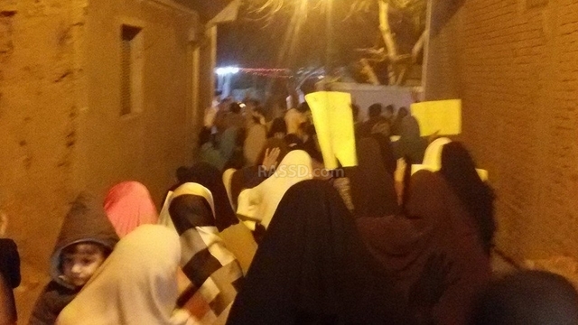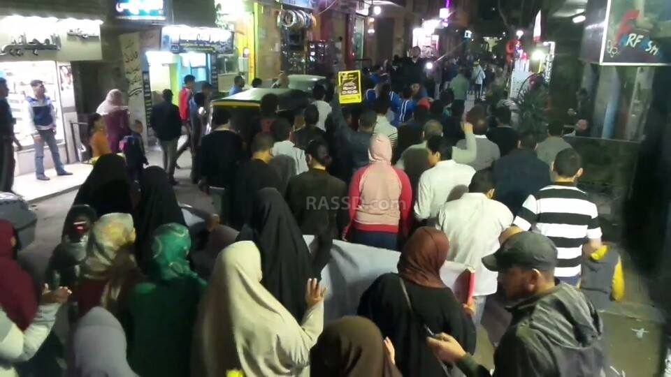 وندد المشاركون باقتحام منازل الأهالي وتكسير محتوياتها، طافت المسيرة شوارع القرية وسط هتافات مناوئة لداخلية الانقلاب، وأخرى مطالبة بمحاكمة المسؤولين عن تلك الجرائم.