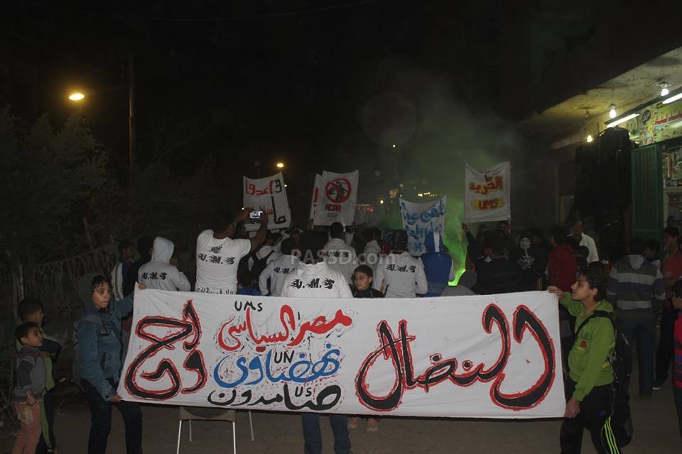نظم طلاب التل الكبير بالإسماعيلية وقفة ليليلة تنديدًا بالمؤتمر الاقتصادي، منددين بإحالة المدنيين للمحاكمات العسكرية، وأحكام الإعدام الأخيرة بحق معارضي حكم العسكر.