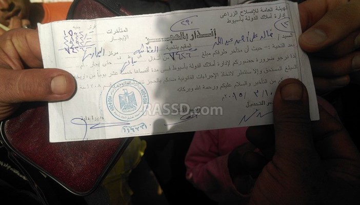 وفوجئ الأهالي بإنذارات وصلت إليهم من قبل إدارة أملاك الدولة، تطالبهم بدفع الأموال أو سيتم الحجز على ممتلكاتهم، الأمر الذي قوبل من بالغضب الشديد والتهديد بعدم الدفع حتى وإن وصل الأمر إلى سجنهم.