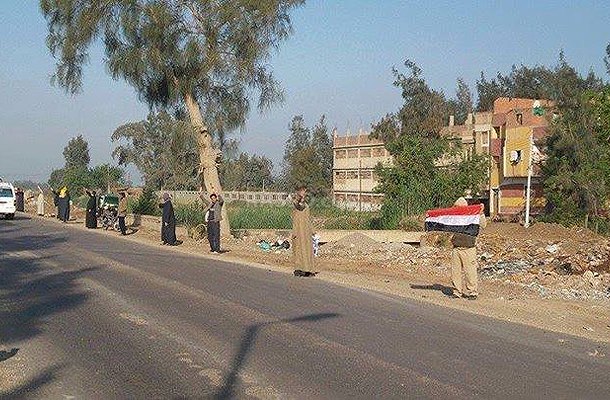 وفي قرية الأعلام التابعة لمركز الفيوم، نظم الأهالي سلسلة بشرية، امتدت على طريق الفيوم- القاهرة الصحراوي، ورفع المشاركون خلالها لافتات مطالبة بوقف إعدام الوطن وأخرى مطالبة بالإفراج الفوري عن جميع المعتقلين .