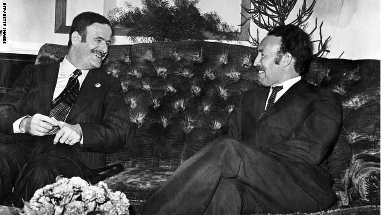 صورة للرئيس الجزائري، على يمين الصورة. التقطت عام 1973 مع الرئيس السوري الراحل حافظ الأسد، عام 1973.