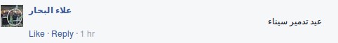 وقال الكاتب الصحفي علاء البحار : “السيسي حول عيد تحرير سيناء إلي عيد تدمير سيناء.