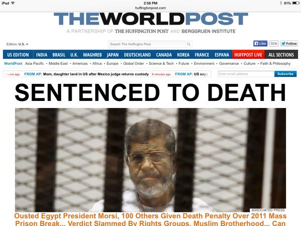 وقالت المجلة الأمريكية في تقرير بعنوان: “مصر تعود لعهدها القديم” إنه: “بينما كان وصول محمد مرسي لحكم مصر قبل ثلاث سنوات بصفة أول رئيس منتخب علامة فارقة في ثورات الربيع العربي، جاء الحكم بإعدامه ليثير موجة من السخط الدولي“.