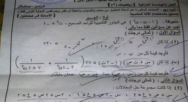 بالصور.. تداول أسئلة امتحان الجبر بعد دقائق من بدء اللجنة