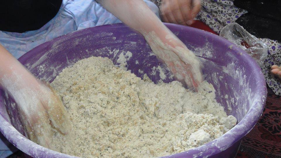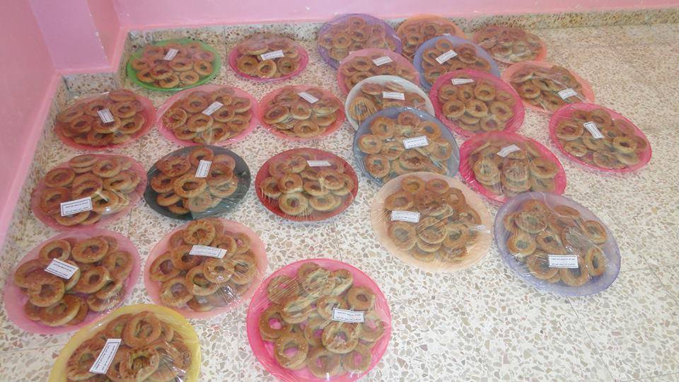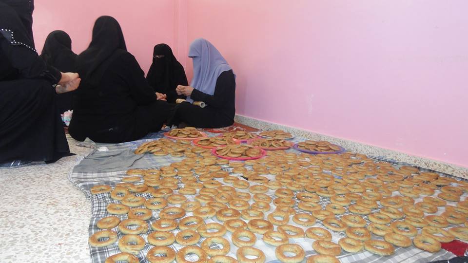 ويعمل الجميع، سيدات وفتيات، لإتقان الكعك الذي سيعطينه للأسر الفقيرة في عيد الفطر المبارك.