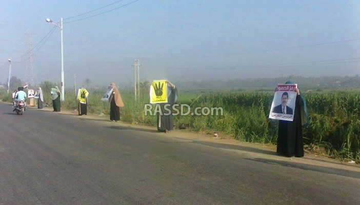 وفي سياق متصل، نظم أهالي دمياط سلسلة بشرية على طريق دمياط- جمصة الزراعي، قبالة قرية أم الرضا التابعة، لمركز كفر البطيخ للتنديد بالانقلاب العسكري.
