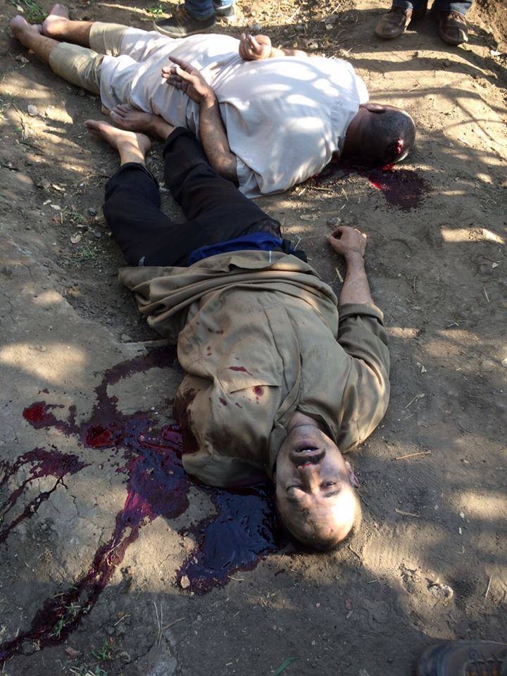 وأظهرت الصور التي نشرتها الصحف المصرية للقتلى الخمسة أنهم تعرضوا للتصفية دون أن يبدو أي مقاومة وظهر اثنين من ضمن القتلى وقد تيبست أيديهم خلف ظهورهم ليبدو بشكل واضح أنهم تعرضوا للقتل وهم مقيدي اليدين خلف الظهر، قبل أن يزيل الأمن القيود عن أياديهم بعد وقت غير قليل.