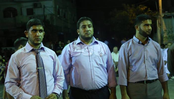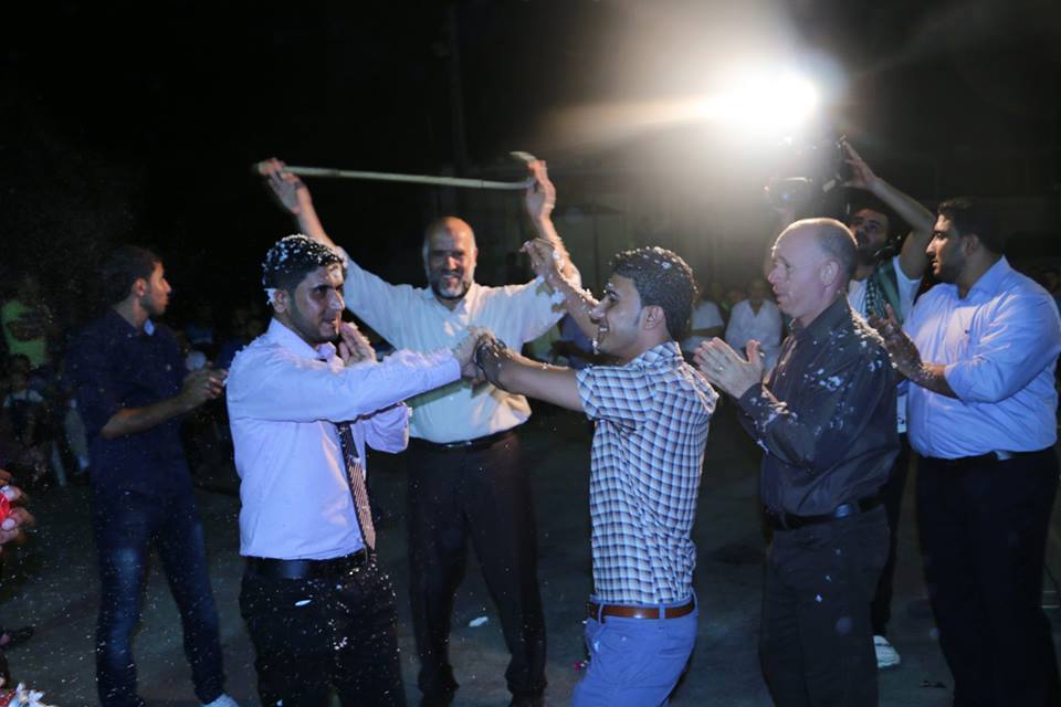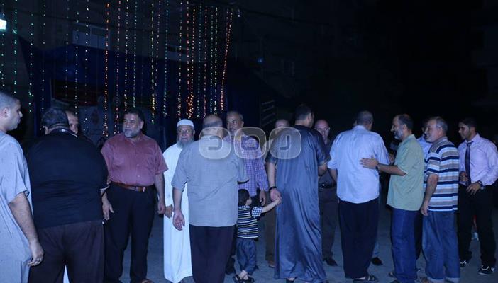 وشارك الأقارب والجيران والأصدقاء، العريس أحمد، احتفاله بيوم زفافه الذي تزين بالأضواء إلى جانب صور شهداء العائلة.