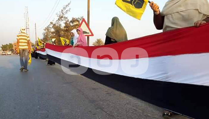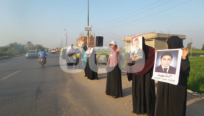 وجاءت السلسلة على طريق “المحمودية دمنهور” رفع خلالها المشاركون رايات رابعة وصور الدكتور محمد مرسي، ولافتات تطالب بالقصاص للشهداء وإطلاق سراح المعتقلين.