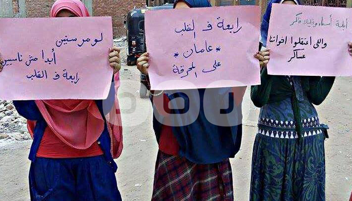 كما نظم طلاب وطالبات منيا القمح، فاعلية امام سنتر الرواد تنديدا بمجزرتي رابعه والنهضة في الذكري الثانية لها.