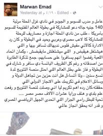 وأضاف : رامي نجح في جمع فلوس التذكرة من أصدقائه وحرص على المشاركة في البطولة رغبم كل الظروف الصعبة التي واجهته”.