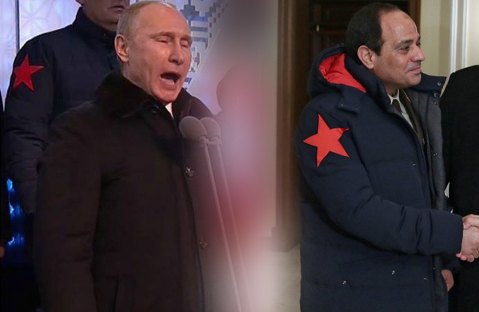 وأثار ظهور “السيسي” في المعطف ذي النجمة الحمراء، خلال لقائه ببوتين في زيارة سابقة موجة من السخرية، بعد ظهور تشابه مع المعطف الذي كان يرتديه شخص من الحراسات الخاصة للرئيس الروسي.