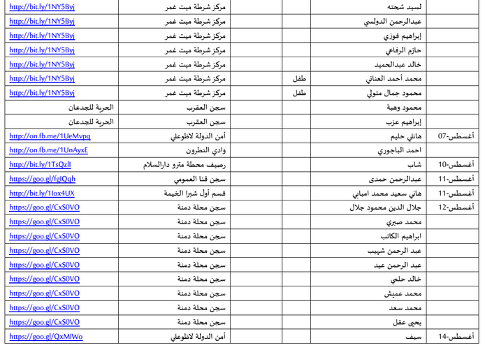 وأفاد المركز بأن التقرير يحتوي على شهادات من هاني الجمل المحتجز بسجن طره، والمصورة إسراء الطويل، والمحتجز أحمد البديوي في سجن وادي النطرون، وشهادات من أسر محتجزين في سجن العقرب ووادي النطرون وبرج العرب، وشهادات أسر محتجزين احتياطيًا في أقسام شرطة المنصورة والشيخ زويد.