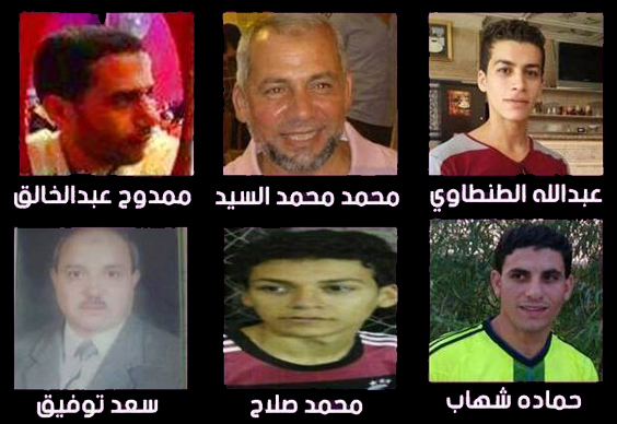وبالسجن 5 سنوات لكل من: محمد عادل، 25 سنة، من قرية الريدانية، ومصطفى الرفاعي عبد الوهاب، الطالب بكلية التجارة من قرية الريدانية، وعمر أشرف، طالب بالفرقة الثانية كلية الحاسبات والمعلومات، من قرية محلة دمنة، وخالد حلمي، الطالب بكلية الآداب من قرية محلة دمنة.