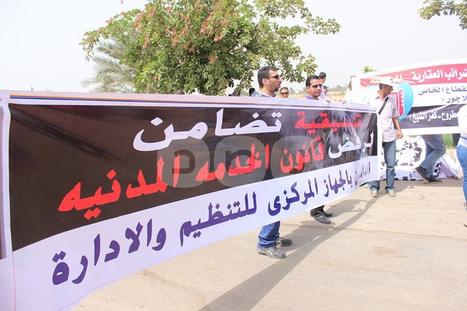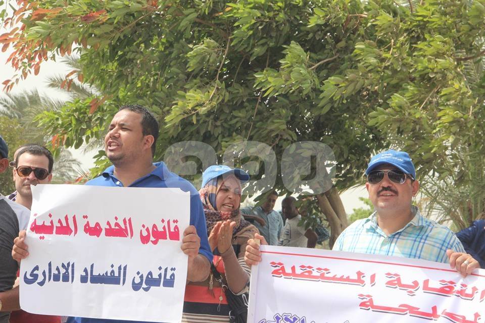 ورفع المشاركون في الوقفة، لافتات ترفض قانون الخدمة المدنية، وتصفه بـ”قانون الفساد”، مطالبين الحكومة بسحبه على الفور، والاستجابة لمطالب العمال والموظفين.