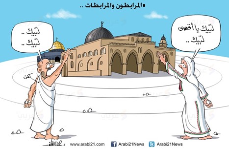 ونشر موقع “عربي 21” كاريكاتيرًا تحت عنوان “المرابطون والمرابطات في حج الأقصى”: