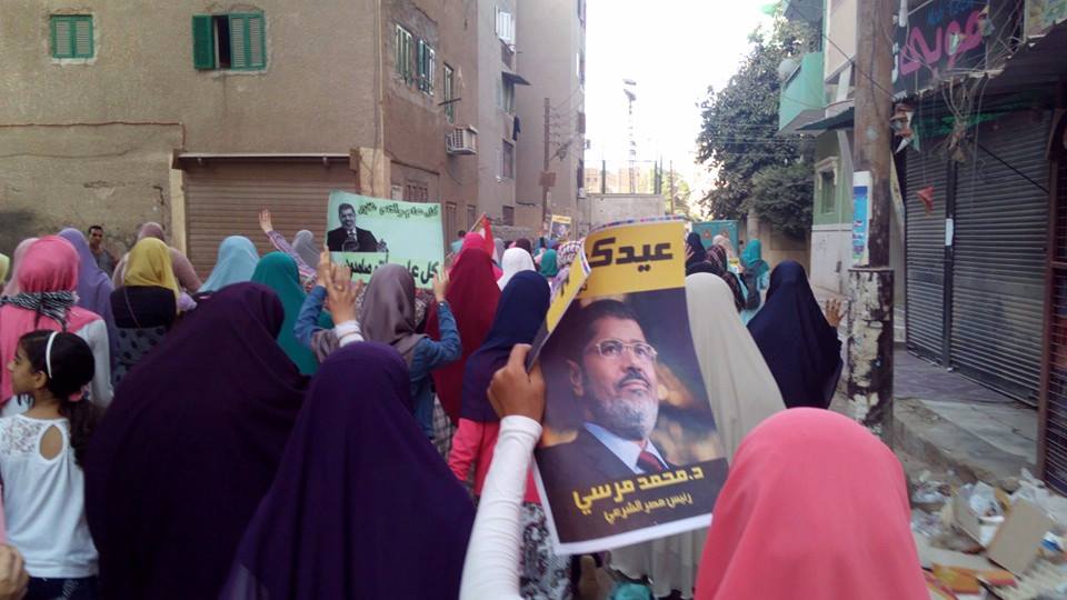 انطلقت تظاهرتان في مدينة بني سويف لتهنئة الأمة الإسلامية بعيد الأضحى المبارك، انطلقت الأولى من مسجد الرحمة والثانية من مسجد الرحمن، رافعين صور الرئيس مرسي وشعارات رابعة العدوية والمسجد الأقصى الأسير.