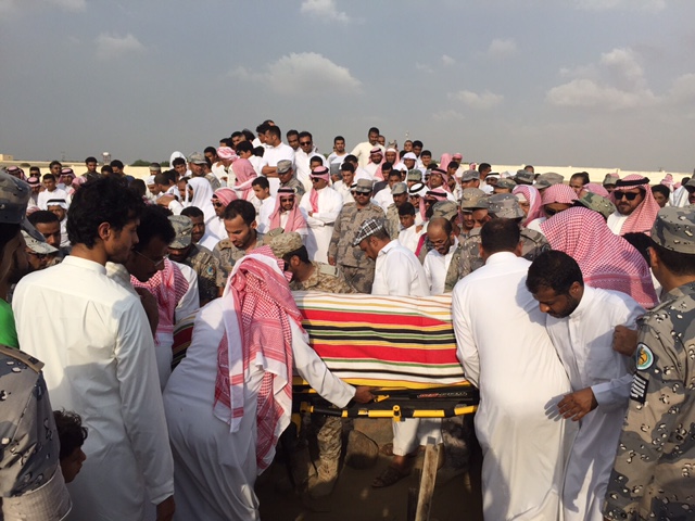 شيع في جازان، اليوم السبت، ضحيتا النيران اليمنية بـ”جازان” مساء أمس الجمعة، وهما قائد قطاع حرس الحدود بالحرث، العقيد الدكتور حسن غشوم عقيلي، والرقيب عبدالرحمن محمد الهزازي.