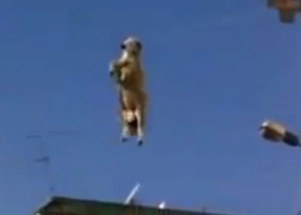 وفي مقطع آخر يظهر فرار خروف من الجزار قبل ذبحه، وقفزه من أعلى سطح البناية التي يتواجد بها مع الجزار، ودفعه حظه العثر لتعلق قرنيه بسلك كهرباء.