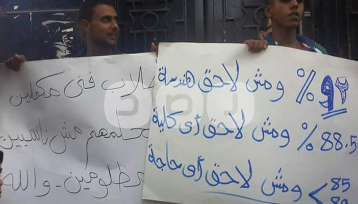 وطالب المحتجون أمام الوزارة، بتحديد نسبة 85% لدخول الكليات الحكومية بدلًا من 88.5%، كما تحدده الوزارة، كما يطالب الطلاب بجعل نسبة القبول المعاهد الخاصة للهندسة من 80%، وزيادة نسبة القبول بكليات الهندسة 15% بدلًا من 10%.