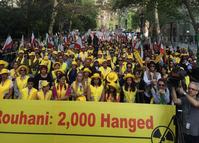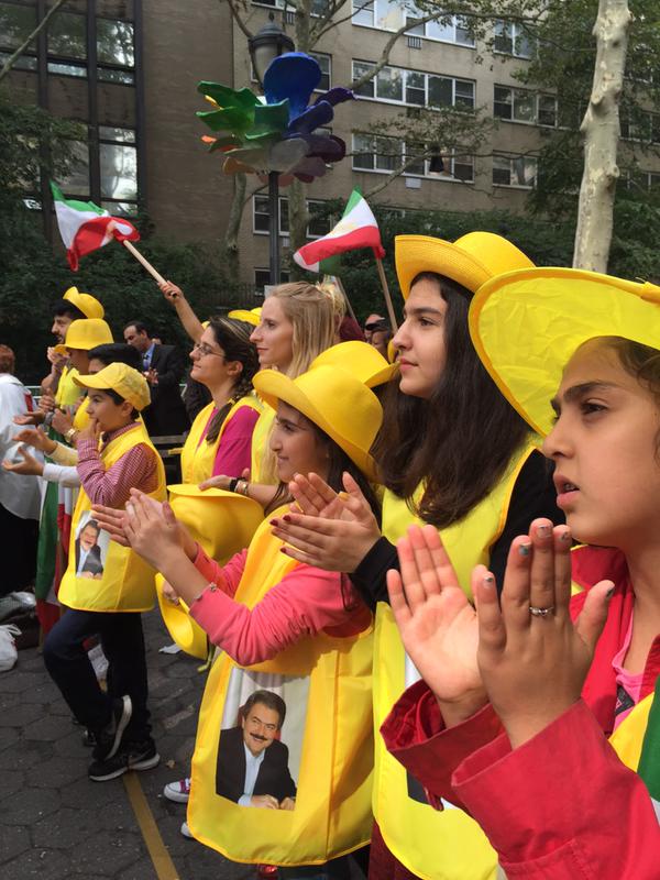 وهتف المتظاهرون بشعار “لا لروحاني”، “اطردوا روحاني من الأمم المتحدة”، رافعين صور مريم رجوي من زعماء المنظمة، وانضم إليهم عدد من الأميركيين.
