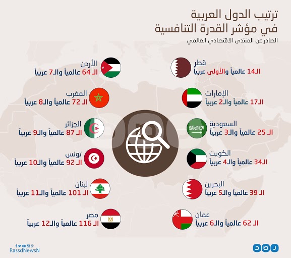 إنفوجرافيك.. مصر الـ116 عالميًّا و12 عربيًّا في مؤشر التنافسية العالمي