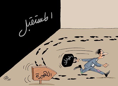 وعن حالة الهجرة التي تسيطر على الشباب العربي، رسمت صحيفة المدى هذا الرسم